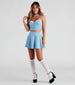 Fall down the rabbit hole into the Halloween party going as the Adventurous Dreamer! Showcase an innocent yet flirty style in this Ponte knit skirt featuring a high-rise waist. skater silhouette. and a short-length hem. Complete the Halloween costume in the matching bustier. knee socks. and accessories!