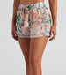 Showcase dreamy island vibes in these lightweight high-rise shorts! They feature a tie-front design. a back-smocked waistband for comfortable wear. a fitted silhouette. and an all-over tropical palm leaf print. Style these cute shorts with the matching kimono and crop top.