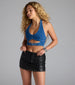 Unleash your inner fashionista in this faux leather skort for a day or a night out! The high-rise waist flatters your figure while the bodycon fit showcases your curves while the grommet trim along the mini-length hem adds that edgy touch you've been craving.