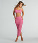Bring on the glittery vibes for your next girl's night in this high slit maxi skirt! Designed with a glitzy glitter knit fabric that has a mini-length lining. this long skirt is glam perfection. It features a high waist. a hip-hugging fit to flaunt your figure. a maxi-length hem with a high-cut back slit for an alluring detail. and an overall form-fitting silhouette for a sultry slay. Complete your going-out look with the matching crop top and clear heels!