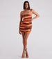 You'll be such a marvel in this marble mini skirt perfect for a girl's night out! It features a high-rise waist. all-over ruching. a mini-length hem. a curve-hugging fit. and a trendy marble print pattern on a lined mesh fabric. Complete the look with the matching bustier and heels.