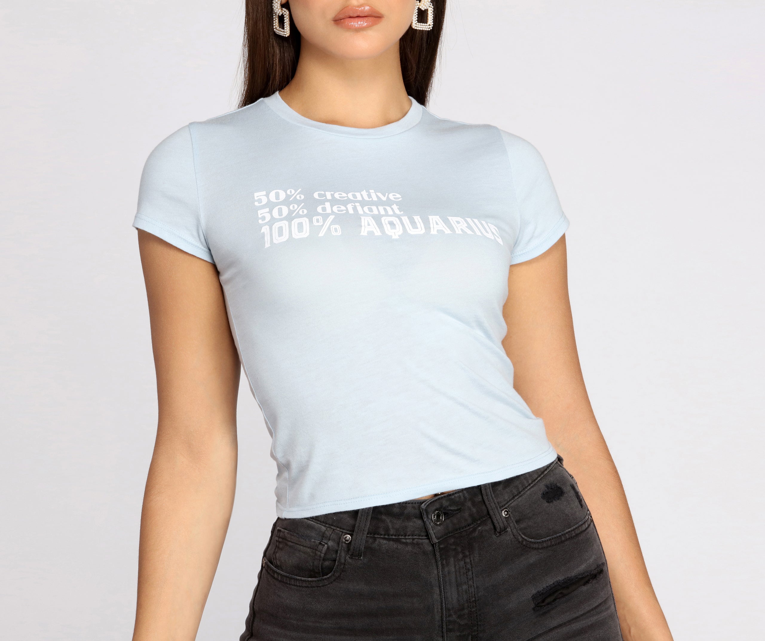 Take 50% Creative and 50% Defiant to create those Aquarius vibes! Pair this cosmically-inspired tee with your fave denim for super casually cute look!