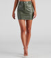 Look and feel like a total 90s babe in this faux leather mini skirt featuring a high-rise waist. bodycon silhouette. a front button. hidden zipper closure. side pockets. and belt loop accents. Complete the look in a mesh top for a night out.