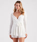 Layer on this adorably stylish eyelet knit bolero over your semi-formal and dressy looks. It features long fitted sleeves. an open front. an ultra-cropped hem. and a pretty eyelet pattern. The lightweight knit fabric offers a moderate stretch. Style with a skater romper and block heels.