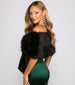 Keep it classy and cute! This shawl is composed of a faux fur with a satin-like lining. It is accented with two thick ribbons at the center to tie the shawl closed for a secure fit. For your next special event. layer this chic shawl over your formal dresses and complete the look with sleek stiletto heels.