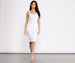 Allure them in this knockout sweater midi dress! Perfect for stepping out for a casual lunch date or layer this dress for the perfect workwear outfit. The dress features a scoop neckline. tank-like straps. and a midi-length silhouette. Elevate your look with square toe strappy mules.