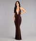 A moment of pure modern allure. the Allyssa formal dress stuns in soft jersey knit that hugs every curve. The plunging halter neckline features a wired shape for structure and confidence. balanced by ruched seams and a fluid front drape sash that adds a touch of drama. Its floor-length mermaid silhouette is made for evenings that feel effortlessly magnetic.