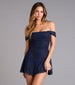 A little sparkle goes a long way—this off-the-shoulder mini dress shines with rhinestone accents and a flirty fit-and-flare silhouette. Perfect for date nights. cocktail bars. or anytime you want that effortless glam.