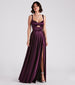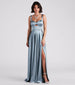 Feel like you're floating on clouds as you gracefully enter the room in the Angelica ball gown! Make a striking impression at formal dances. black-tie weddings. and galas. She features a sleeveless sweetheart neckline with tank-style straps. a lightly padded bust and keyhole accent. and a captivating lace-up back design. Her high waist seam leads to the flattering a-line silhouette with hidden side pockets to keep your hands warm. and a sultry front high-cut slit along the floor-length hem. The formal gown is composed of a lined silky lustrous satin fabric with a subtle sheen and moderate stretch. Style with a beaded evening clutch and platform heels to complete your dressy look!