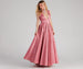 • High waist seam. floor-length ball gown silhouette. pleated detailing. petticoat