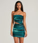 Showcase an artsy flair in this abstract mesh mini dress tonight! Featuring a striking strapless neckline. side ruched seams for a flattering fit. and a unique side cutout design. this bodycon mini-length dress is all about highlighting your curvaceous figure. Complete the look with stiletto heels.