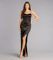 All out glamour has arrived. and she's the Avery satin formal dress. This mermaid dress brings all the allure with a curve-loving silhouette. a sweetheart neckline. and a high slit that guarantees jaws drop!