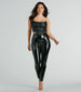 These sleek faux leather leggings are iconic for your baddie era! The patent faux leather material will give your 'fit a chic sheen and an edgy vibe. The high waist has a hip-hugging fit. leading to a form-hugging fit throughout the leg. Style with a corset top and stilettos for your next night out.