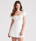 Enter looking like bae just breezed in! Capture cuteness in this cotton short dress featuring short puff sleeves. a square neck. an open lace-up back. and an A-line silhouette. Style with a trendy crossbody bag and heels.