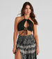 Keep it basic and cute with a halter top that showcases a hint of skin! The crop top features a sleeveless halter neckline with halter neckties. a large keyhole at the center of the bodice. a mini lace-up detail. and a cropped hem. The top is composed of a lined faux suede fabric that offers a form-hugging fit with a moderate stretch. Complete look with a high waist mini skirt.