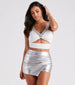 This mesh crop top is bejeweled to make your acquaintance! It features a sleeveless plunge V-neckline with rhinestone gems. a pleated mesh overlay. and a cutout detail along the hem. Complete the look in a bodycon skirt and heels!