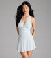 Twirl with bliss in this darling lace skater mini dress with a flirty halter neckline and open back. It's perfect for shower celebrations or a dressy date night!