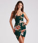 You'll bloom with beauty in this effortlessly stunning floral mini dress. It features a sleeveless V-neckline. spaghetti straps that lead to an open back with a subtle strappy design. a faux wrap-front silhouette creating an asymmetric mini-length hem. and a curve-hugging fit. The stretchy knit fabric showcases a gorgeous bold floral print. Style with stilettos for a spring date night.