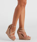 Reach ambitious fashion heights in these nubuck wedges perfect for bringing those sophisticated vibes! They feature an almond toe. asymmetrical straps. wedge platform sole. and buckle closure. Complete the look in a polished midi dress.