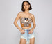 Hit the open road with this tube top that says it all! The tube top features a sleeveless square neckline. an eagle graphic. and a graphic that reads: "Motorcycle Hell Rider. Complete look with cutoff shorts.