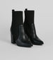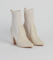 These faux leather booties will have you feeling a new attitude! They feature a sleek pointed-toe. a block heel. and a stretchy rib knit panel with a pull tab for easy on-and-off styling. Complete the look with a chic crossbody bag for a day or evening out!