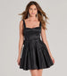Chat. dance. and twirl the night away in the Brenda taffeta skater dress! The short dress is ready to party with a voluminous silhouette and a stunning low-cut back with a statement bow.