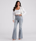 Cross the line into the stylish Bri jeans by Windsor denim you'll be wearing on rotation all season! They feature a flattering high-rise waist. hip-hugging fit. a flared hem. and a trendy pinstriped pattern on medium-wash denim fabric. Complete the look in a crop moto jacket.
