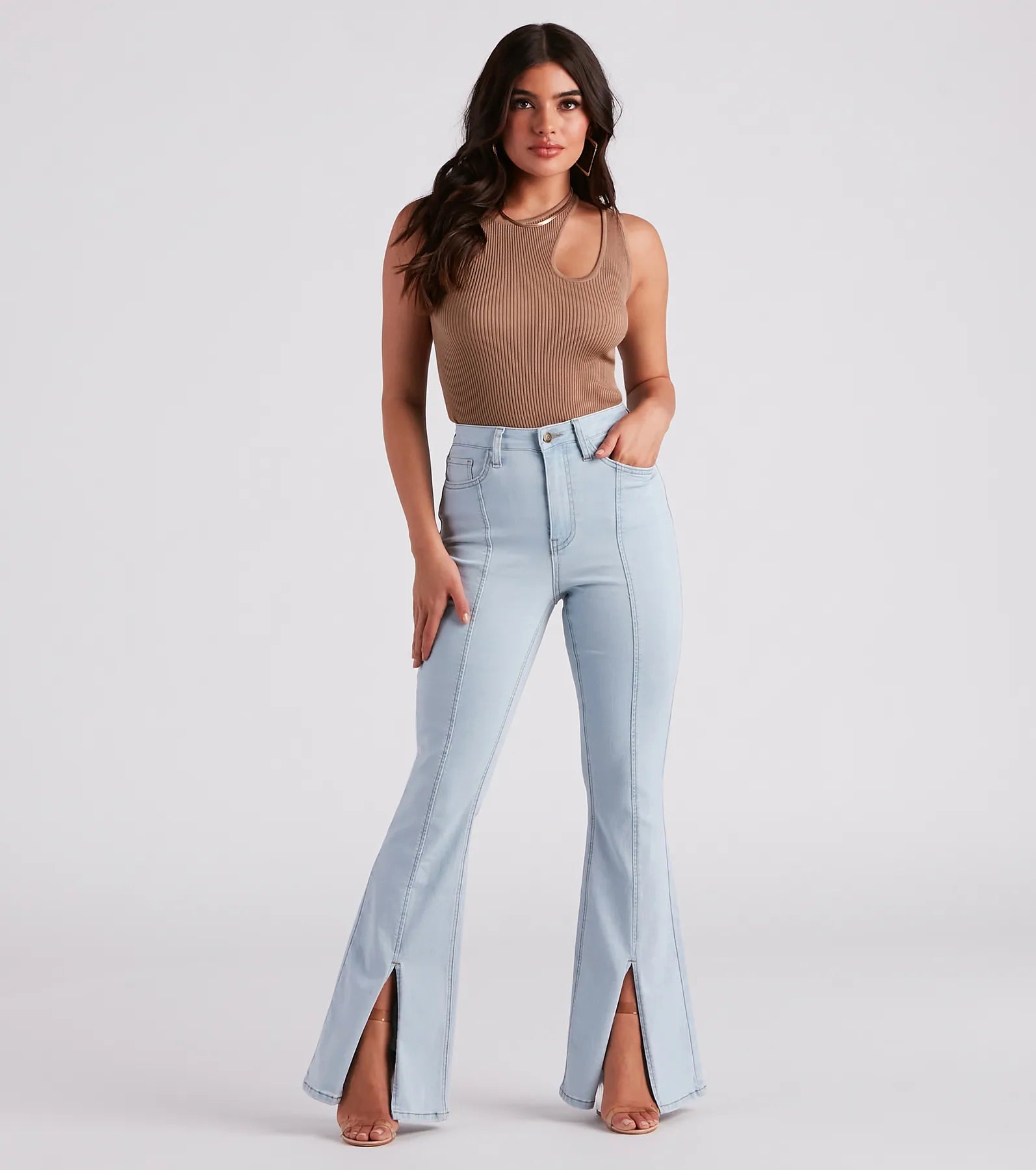 Bri High-Rise Split Hem Flare Jeans by Windsor Denim