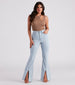 Elevate your everyday outfits with a fab retro vibe with the Bri split hem flare jeans by Windsor Denim. They feature a high-rise waist. a hip-hugging fit that continues throughout the legs. and a flared hem with a front split hem accent. Style with a crop top and platform heels.