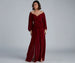 Effortlessly chic. the Britt off-the-shoulder chiffon formal dress will create a gorgeous flowy A-line silhouette. She features a wrap-front V-neckline. long sheer bishop sleeves. a high-rise elastic banded waist with a tie-front accent. and a floor-length relaxed fit with a high side slit. The sheer chiffon fabric has a mini-length knit lining. Style this dress with block heels.