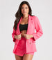 Make major boss moves in this business-chic blazer! It features a lapel collar. shoulder pads for structure. long cuffed sleeves. a double-breasted design. dual faux pockets. and a fitted silhouette. Style with a basic bodysuit and the matching skort and you'll be dressed to impress.