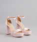 For nights when you want to feel a little dreamy. these satin platform heels deliver. Finished with rhinestone butterfly details and an ankle strap. they're made for dancing at homecoming. weddings. or parties!