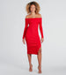 If chic comes naturally. this sweater maxi dress can't help but make your style shine! The maxi dress features an off-the-shoulder folded neckline. fitted long sleeves. a flattering bodycon silhouette. and a side slit on stretchy rib knit fabric. Complete the look in sleek stiletto heels for date nights or holiday parties!