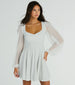 Captivate the room in this glitter party skater dress out on the dance floor! It features chiffon long sleeves with elastic cuffs. a sweetheart neck. and a fit-and-flare skater silhouette with a short-length hem. The glitzy glitter knit fabric offers a moderate stretch. Complete the look in this skater dress with lace-up heels for a celebration!