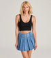 Easy days just got cuter thanks to this mini denim skort! The adjustable belted waist provides a perfect fit while the pleated A-line silhouette flatters your figure. The mini-length hem adds a touch of flirty fun. Complete the look in a cute graphic tee and sneakers.