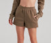 Keep it cute and casual in these trendy fleece shorts that will step up your loungewear! They feature a high-rise elasticized waist. side pockets. and a relaxed fit. The shorts are composed of a cozy knit fabric with a soft fleece lining and offer a moderate stretch. Complete the look with the matching cropped hoodie.