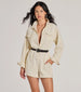 Capture a casually cool vibe for your weekend plans in this long sleeve denim romper! It features a structured collared neckline. long sleeves with snap button closures. a snap button-down front. dual buttoned chest pockets and side pockets. a stylish cuffed hem. and a relaxed fit for an effortlessly on-trend look. Pair with hoop earrings and sneakers!