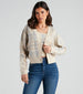 Step up your fall wardrobe with this casually preppy cardigan! Featuring long sleeves. a button-down front. a mid-length hem. a relaxed fit. and an all-over plaid print. this sweater knit cardigan is perfect for keeping it chic. Style with the matching crop top.