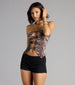 This ring detail mesh top is your go-to for turning heads. With bold cutouts linked by sleek metal rings and a flirty asymmetric hem. this zebra mesh tube top brings all the attitude with zero effort.