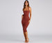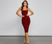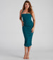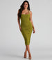 Get a gorgeous silhouette in the stunningly chic Celeste midi dress. She features an on-trend sleeveless square neckline with a halter strap. ruched detailing down the back. and a mid-length. curve-hugging silhouette. Complete the look with hoop earrings and chic heels.