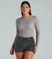 Have the spotlight on you taking center stage in this glitter mesh bodysuit! It features fitted long sleeves. a crew neck. a form-hugging fit. a thong bottom. and snap-button closures on sheer mesh fabric. Complete your look in sparkly shorts for a party.