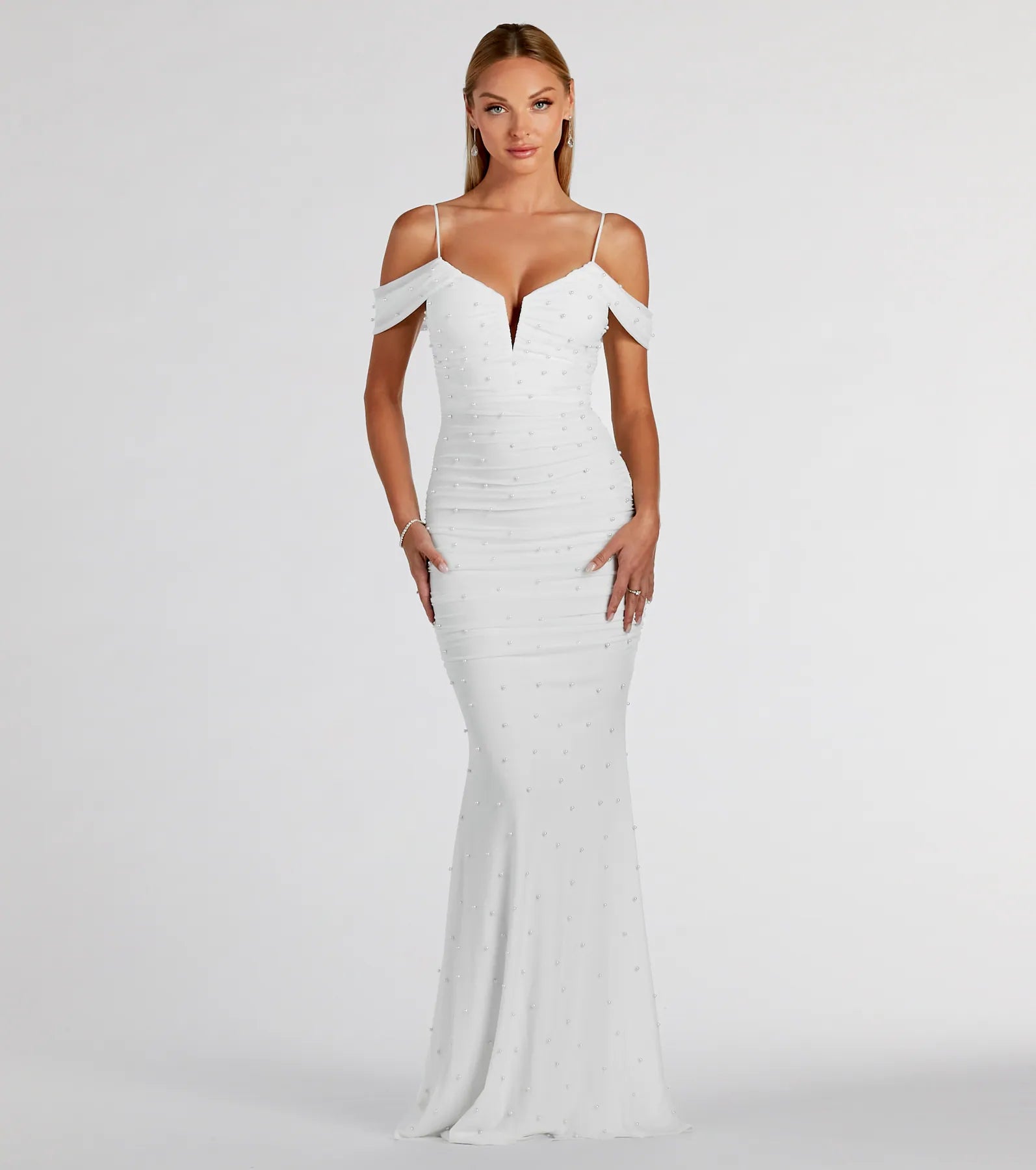 Charlene Formal Faux Pearl Mesh Mermaid Dress