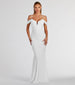 • Side ruched seams. mermaid silhouette. floor-length hem