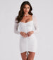 Hey babe. get a chic look for your next night out in this trendy mesh mini dress. It features a subtle V-neckline. long sheer fitted sleeves with ruched detailing. all-over ruching down the dress. a center adjustable drawstring at the hem. and a short. curve-hugging silhouette. Style this dress with statement earrings and clear heels.