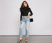 Keep it chic in a crop top that is perfect for layering with your favorite style staples. The crop top features a mock neck with a merrow edge trim. long sleeves. and a cropped hem. Complete your look with high waist mom jeans and a cute crossbody.