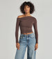 An off-shoulder crop top crafted from a soft cotton-blend fabric with cozy fitted long sleeves and a form-hugging fit perfect for layering. Pair with a jacket or coat.