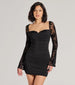 Chic Drama Flocked Floral Long Sleeve Mini Dress