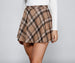 Showcase your chic flair in this flirty plaid skater skirt! It features a high-rise waist. a short fit and flare silhouette. and an all-over classic plaid print. Style this skirt with a basic long sleeve top and ankle booties.