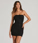 Enter looking like chic in this mesh mini dress for a night on the town! The dress is crafted from a textured mesh fabric designed in a strapless and bodycon silhouette complete with a sassy cutout back and mini-length hem. Style this dress with statement earrings.