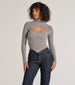 Keep it chic with this ribbed knit cutout crop top. Featuring a turtleneck. bust cutout. and v-shaped hem. this top is your go-to for standout style.